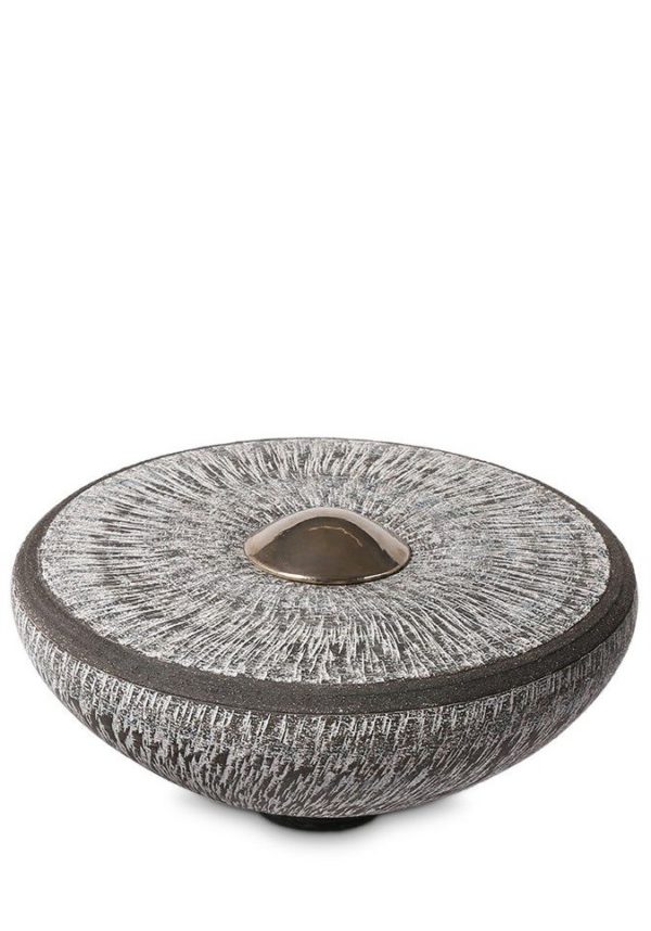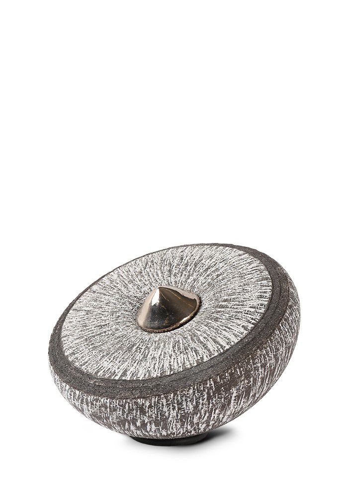 De Balance Line – Carbon Grey is een prachtig keramisch as-gedenkornament, geïnspireerd op de vier elementen uit de natuur: aarde, water, lucht en vuur. In deze urn ziet u de kracht en verfijning van de natuur terug in structuur, vorm en kleur.