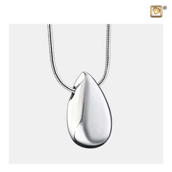 Deze zilveren Drop-hanger vertaalt liefde en gemis in een minimalistische, vloeiende lijn. Het massief 925 sterling zilver is voorzien van een rhodiumlaag die de helderheid behoudt en het oppervlak beschermt tegen verkleuring. Een subtiel schroefmechanisme aan de bovenzijde geeft toegang tot een klein asreservoir; het benodigde vulsetje en een slijtvaste slangeketting van 51 cm worden meegeleverd in een zijdezacht doosje. Door de uitgebalanceerde vorm valt de druppel mooi centraal op de borst, waar hij licht weerspiegelt bij elke beweging. Dit ingetogen stuk past bij zowel casual als formele outfits en biedt een discrete, maar krachtige manier om een dierbare te gedenken. Heeft u hulp nodig bij het vullen of wilt u onderhoudstips? Neem gerust contact op via onze contactpagina. Het volledige sieradenaanbod staat op sieraden.